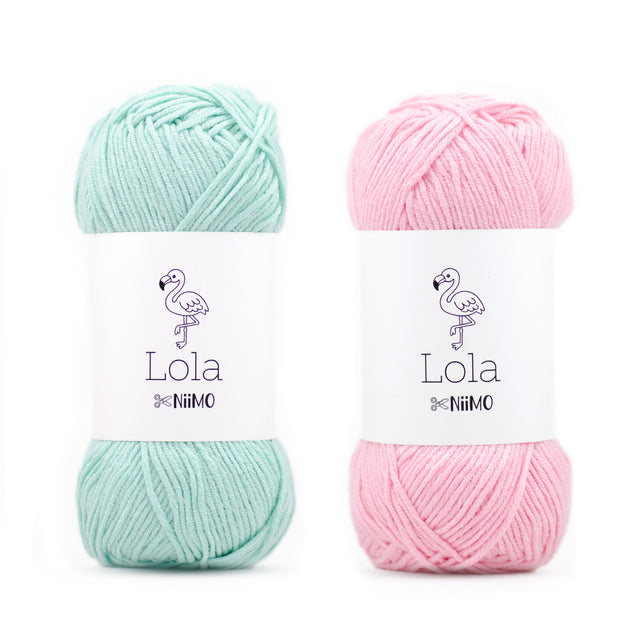 Lola är ett mjukt och härligt garn av 60 % bomull och 40 % akryl. En fin blandning som gör det både svalt, lätt och formstabilt. Bomullen ger en naturlig känsla medan akrylen gör garnet mjukt och lätt att jobba med.