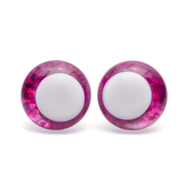 Dessa no-center säkerhetsögon med vita pupiller ger dina figurer ett unikt och lekfullt uttryck. Den förskjutna pupillen tillsammans med det skimrande glitterlagret skapar liv, djup och extra personlighet – perfekt för att ge dina handgjorda amigurumis och kreativa projekt ett riktigt charmigt och unikt utseende.