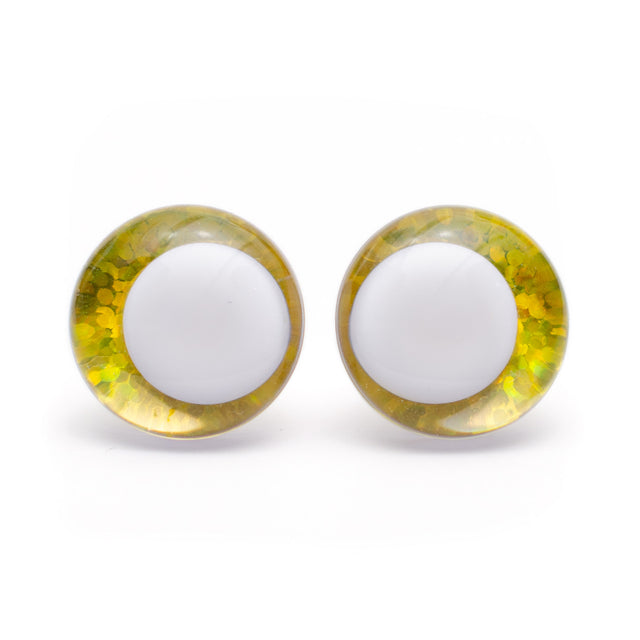 Dessa no-center säkerhetsögon med vita pupiller ger dina figurer ett unikt och lekfullt uttryck. Den förskjutna pupillen tillsammans med det skimrande glitterlagret skapar liv, djup och extra personlighet – perfekt för att ge dina handgjorda amigurumis och kreativa projekt ett riktigt charmigt och unikt utseende.