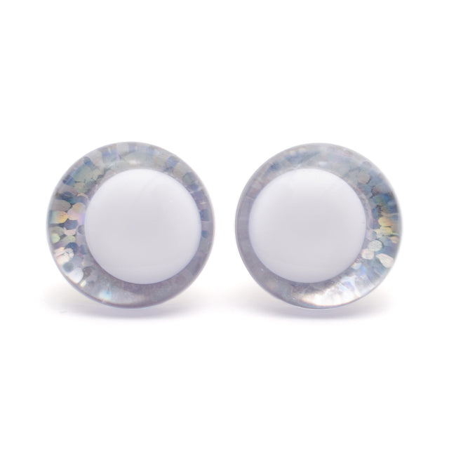 Dessa no-center säkerhetsögon med vita pupiller ger dina figurer ett unikt och lekfullt uttryck. Den förskjutna pupillen tillsammans med det skimrande glitterlagret skapar liv, djup och extra personlighet – perfekt för att ge dina handgjorda amigurumis och kreativa projekt ett riktigt charmigt och unikt utseende.